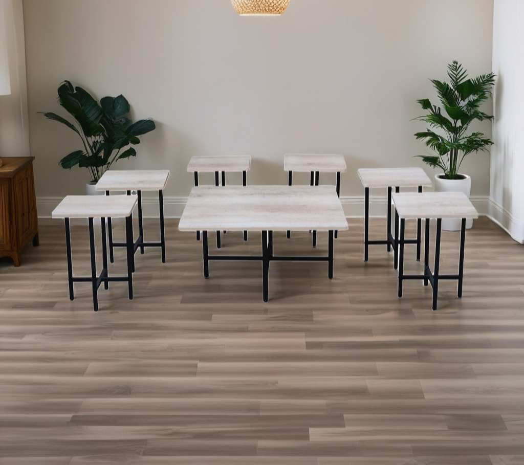 أضف لمسة عملية وجذابة لمجلسك مع طاولات شاي خشب مصنوعة من خشب صيني متين، بألوان بني، رمادي، بيج، بني غامق، أو رصاصي. هذا الطقم المكون من 7 قطع مثالي لاستخدامه كـ طاولات شاي وقهوه في غرفة المعيشة أو مع طقم الكنب.