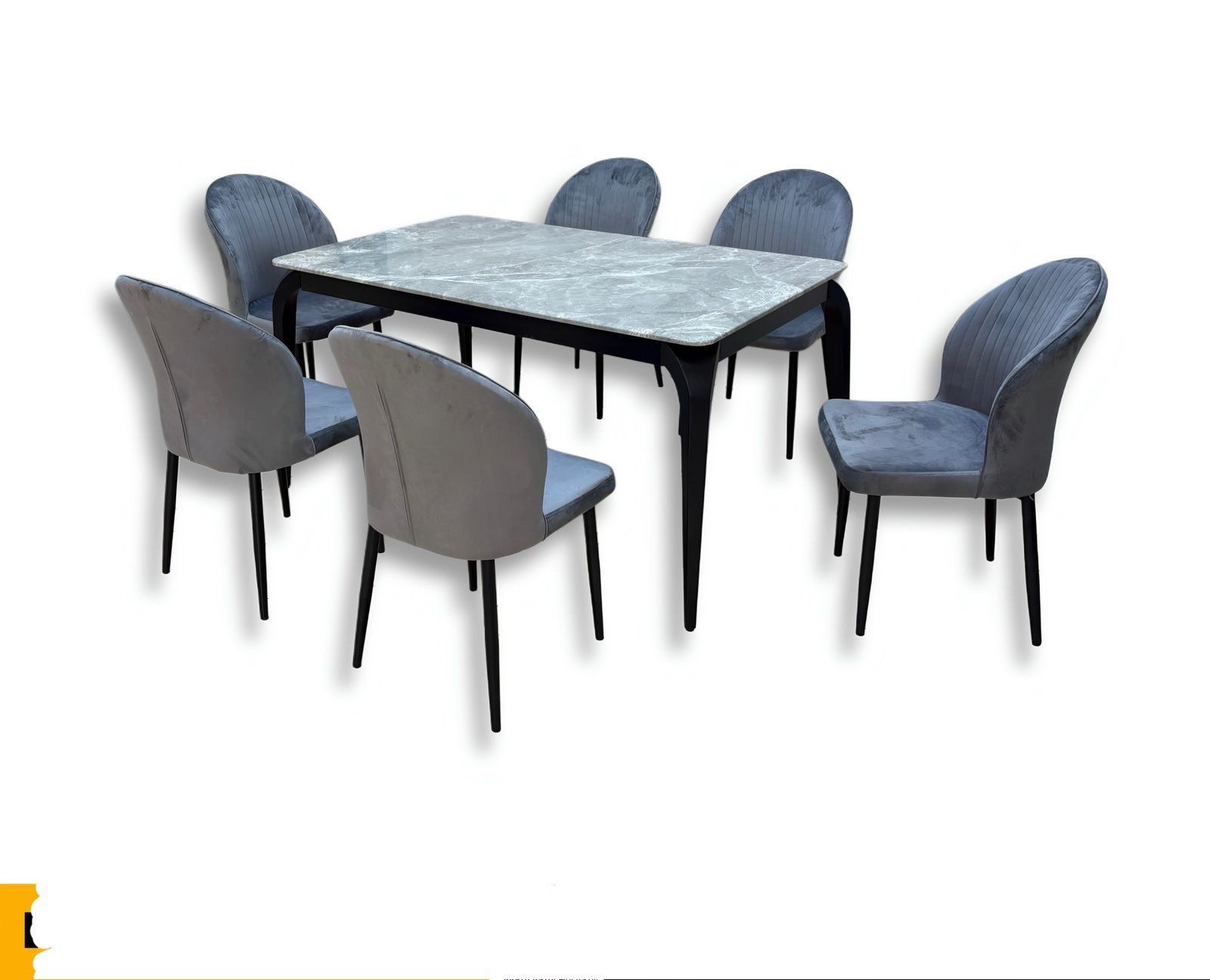 احصل علي طاوله طعام فاخره مصنوعه من الحديد و الرخام مع 6 كرسي أنيقه .