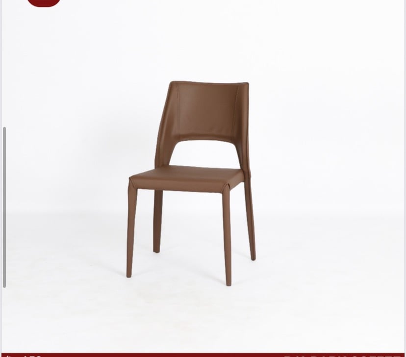 الكراسي المعروضة أنيقة بتصميم عصري، مغطاة بجلد فاخر يضفي لمسة من الفخامة والرقي. مثالية لغرف الطعام أو المكاتب، تجمع بين الراحة الفائقة والمتانة العالية في آنٍ واحد.