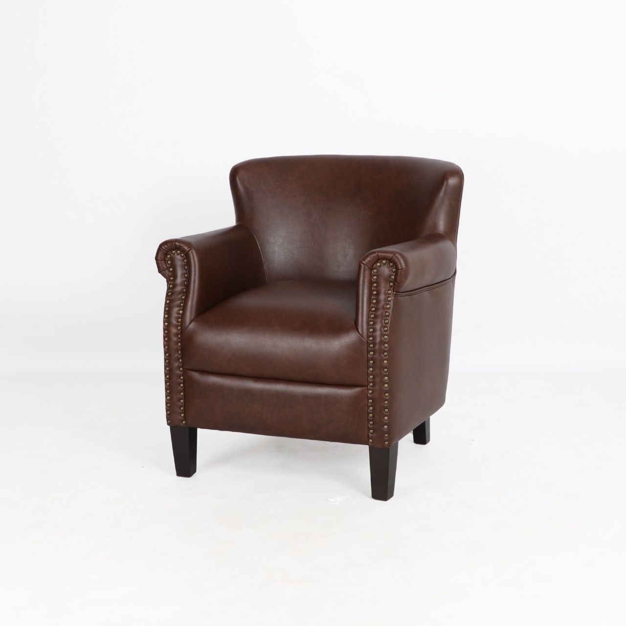كرسي فريد لغرفة المعيشة - هذا الكرسي بذراعين مصنوع من جلد نباتي، يضفي لمسة من الأناقة والطابع الكلاسيكي على غرفة معيشتك أو غرفة نومك. بفضل مسند الظهر الكلاسيكي، والأرجل المعدنية المدببة باللون الأسود، وحواف المسامير، سيُصبح كرسينا الجانبي ذو الظهر المجنح نقطة محورية في غرفتك. هذا الكرسي مثالي للاستمتاع بقراءة كتاب رائع أو التحدث مع الأصدقاء والعائلة.