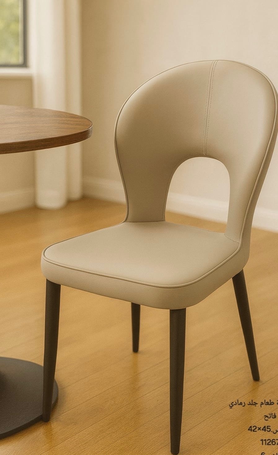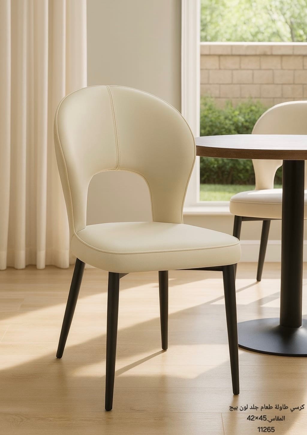 كراسي طعام جلد أنيقة بتصميم عصري مع ظهر مقوس بفتحة مميزة تضيف لمسة فخامة وجاذبية.
