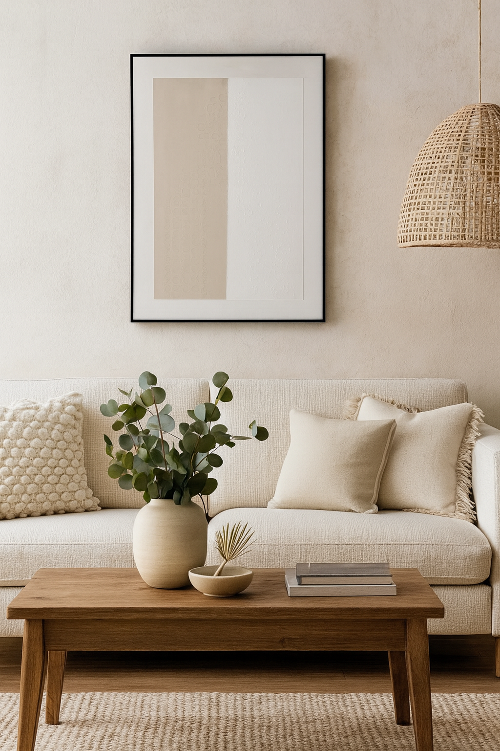 تأتي اللوحة بإطار خشبي رفيع باللون الأسود، يبرز جمال التصميم الداخلي ويضفي عليها طابعًا عصريًا وأنيقًا. أبعاد اللوحة المثالية (80-120 سم) تجعلها مناسبة لمختلف المساحات، سواء كانت جدارًا كبيرًا يحتاج إلى قطعة مركزية، أو مساحة صغيرة تحتاج إلى لمسة فنية مميزة. هذه اللوحة هي الإضافة المثالية لأي غرفة تسعى لإضفاء جو من الهدوء، الرقي، واللمسة الفنية المعاصرة