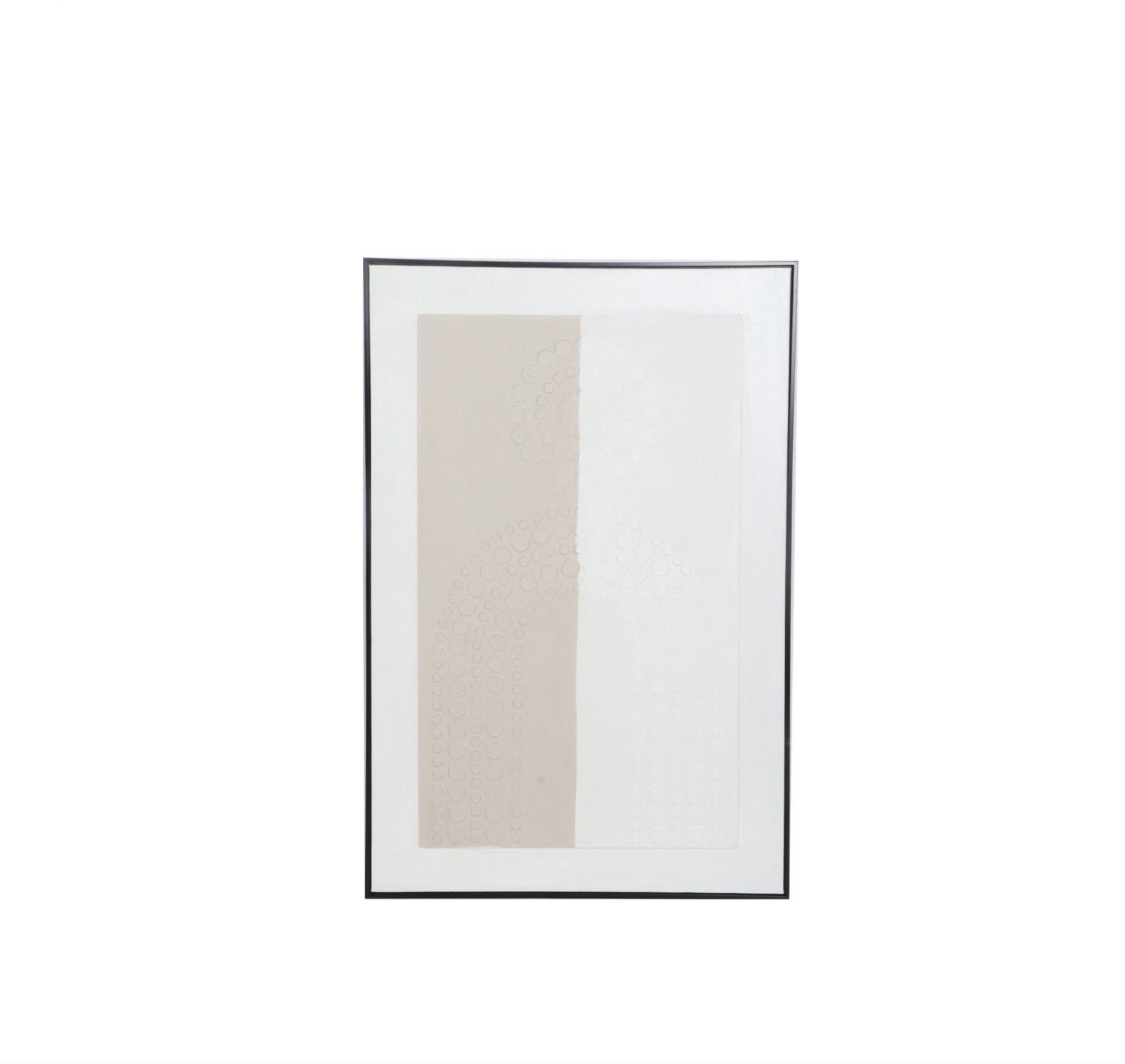 حوّل جدران منزلك إلى لوحة فنية تعكس ذوقك الرفيع مع هذه اللوحة الجدارية الأنيقة والمميزة. تتميز هذه اللوحة بتصميم تجريدي يجمع بين البساطة والعمق، حيث يظهر تباينًا جميلًا بين قسمين رأسيين، أحدهما باللون البيج الدافئ والآخر باللون الأبيض الناصع. يزين كلا القسمين أنماط دائرية صغيرة متكررة، تضفي نسيجًا بصريًا وحركة فنية، مما يجعلها قطعة فريدة وملفتة للنظر.