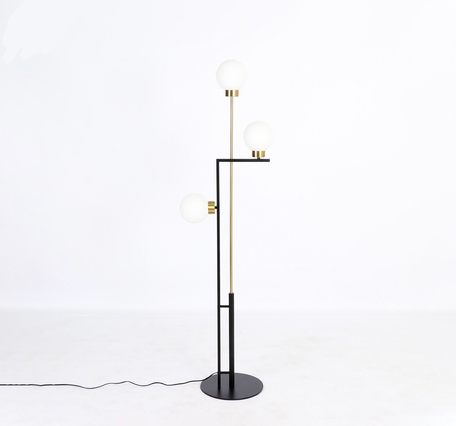 مصباح ارضي مميز بحامل طويل مزود بقضبان طولية وعرضية تضفي لمسة هندسية للتصميم مما يجعله من أفضل الخيارات لمكاتب العمل، كما نه مزود بثلاثة لمبات انارة دائرية توفر انارة ممتازة للمحيط.